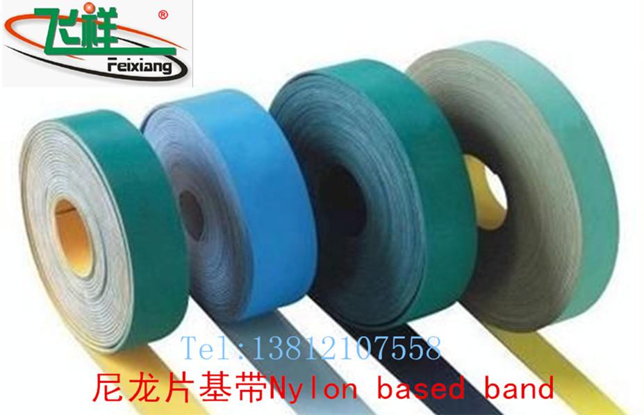 1.尼龙片基带、片基龙带 (也叫片基带)它属于平面高速传动带,带体中间层为尼龙片基,上下表面覆盖有橡胶、牛皮、纤维布等;带体厚度通常在1-6mm范围。江阴飞祥科技有限公司生产的片基带产品具有强度高、耐疲劳、耐磨;材料结构创新独特,较之传统的帆布传动带和三角带具有:拉力强、耐曲挠、效率高、噪音小、使用寿命长等优点。它有以下几个系列产品: